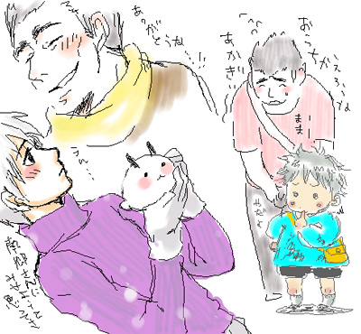 このブログ内では南郷さんがしげる(13)をこども扱いするのがデフォです。さらに、一緒に何か食べてたり食べさせてたり、食べ物に関わる話が多いかもしれません。絵も描いたりします。基本的におっさんとこどもしかいないブログです。