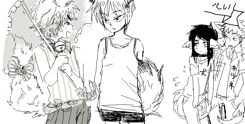 セレブ飼い猫の仔坊猫(hicomaro)と家出中の野良仔しげ(しんじさん)、カイジ犬とサハラ狐(issoさん)